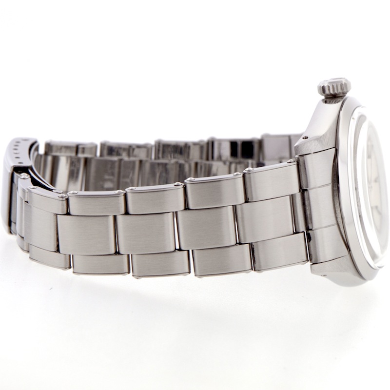 Tapping the vintage market is something that is far out of reach for most. This is one of the last references that does not break the bank. We have trawled the net trying to find a nicer example and we can't. So her's your chance. I know what your thinking, its a bit small. Well actually its a 34mm case but the oversize crown makes up for it. I've got a chunky wrist and i dont do 34mm but serriously, i love it. I thought it would be too small but you wear it more like a bracelet. It looks brilliant. It's the sort of thing that John Mayer (massive rolex fan) would wear with a few man bangles. It comes on a super tight riveted bracelet which is super hard to find in this nick not to mention dial and hands are evenly pitted with uniform patina.