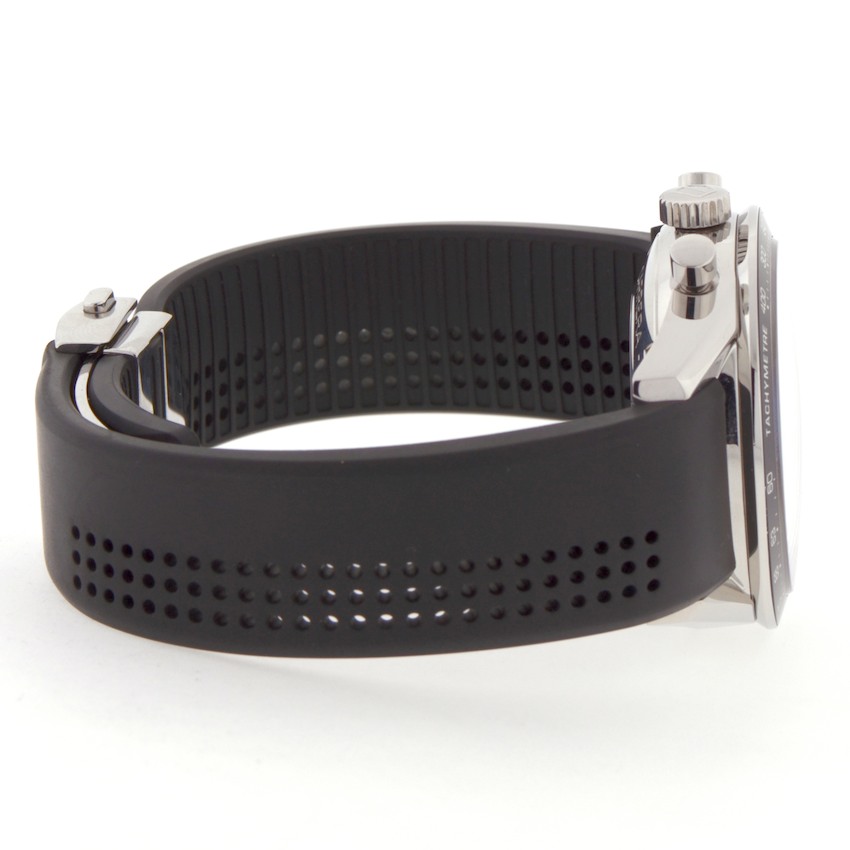 Stunning condition Tag Heuer Carrera Calibre 16 with full box and papers. This one is a late 2009 model. It's undoubtedly one of the most iconic sport chronographs in the horological world. This one comes on a super comfortable hassle free rubber strap with deployment buckle. Perfect for the active wearer. You don't have to worry about getting scratches in the stainless steel bracelet with this one.
